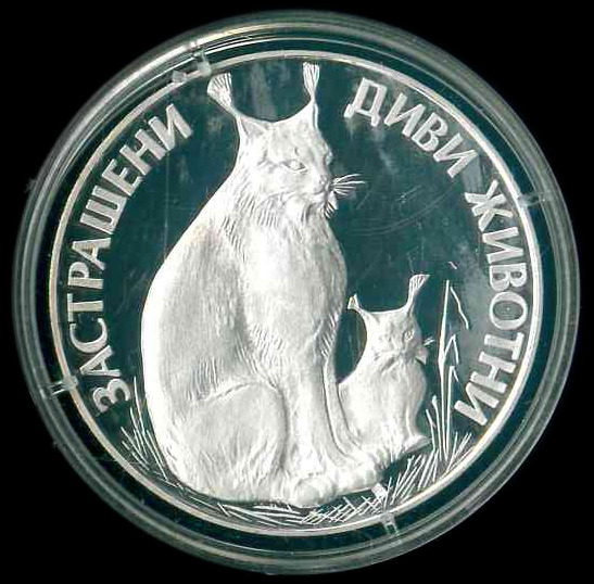 1990 保加利亞銀幣 25 Aeba (野生動物保護系列-猞猁) 品相如圖 編號:NIL
