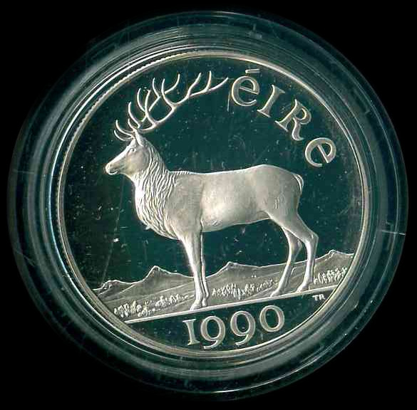 1990 愛爾蘭銀幣 10 Ecu (野生動物保護系列-紅鹿 .925) 品相如圖 編號:NIL