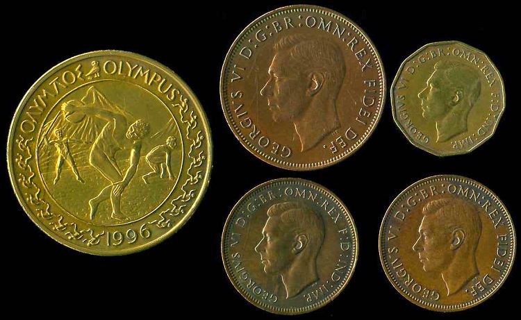 1937-1952/1996 英國佐治六世錢幣x4(不同年份,面值) 希臘奧運會 €10 VF-AU 編號:NIL(共5枚)