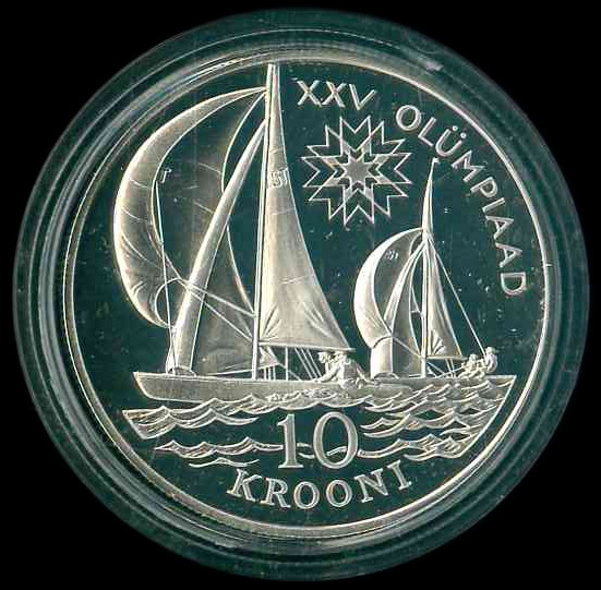 1992 愛沙尼亞銀幣 10 Krooni (1992 夏季奧運會 0.925) 品相如圖 編號:NIL