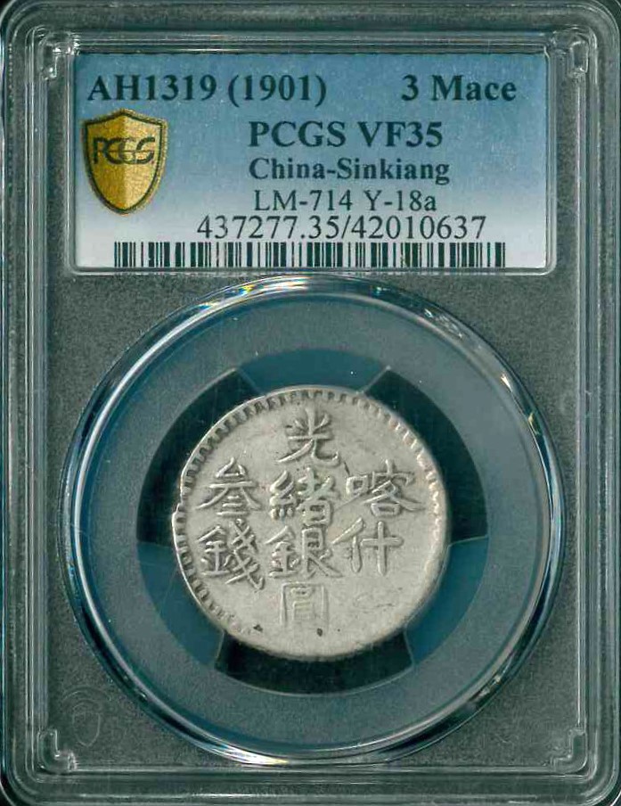 1901(AH1319) 新彊喀什光緒銀圓叁錢 (Y18a) PCGS VF 35 編號: 42010637