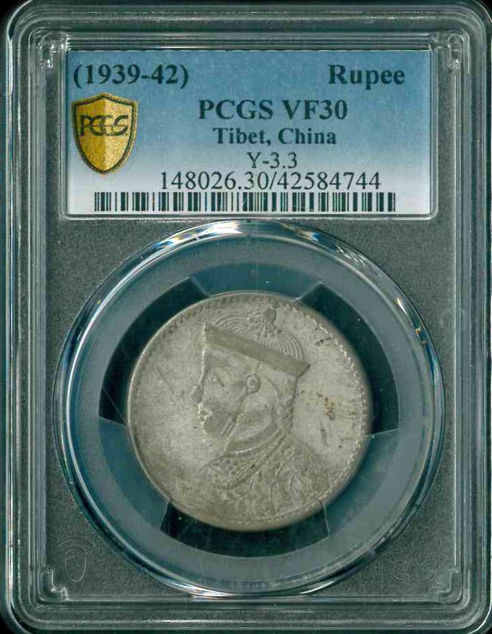 1939-42 西藏 Rupee (Y3.3) PCGS VF30 編號: 42584744