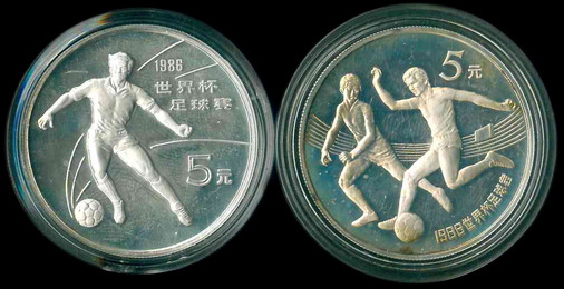 1986 中國銀幣 $5 (1988 世界盃足球2全) Proof 編號: NIL(共2枚)