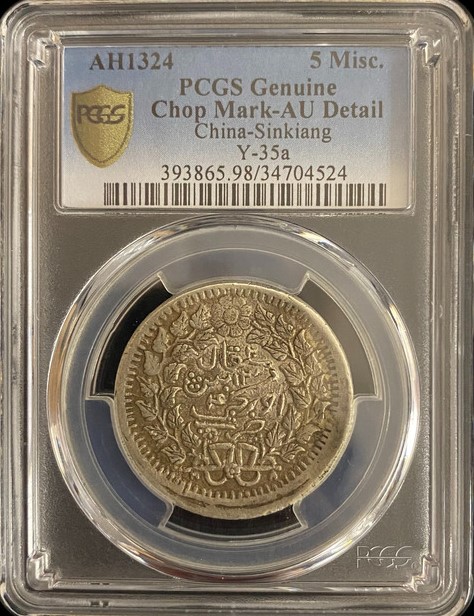 1906(AH1324) 新彊迪化光緒銀圓伍錢 PCGS AU Detail 編號:34704524