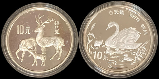 1997 中國梅花鹿/白天鵝(瀕臨絶種動物) $10 2全 Proof 編號:NIL(共2枚)