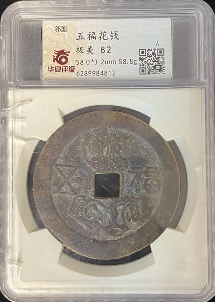 ND 鄰國 五福花錢 華夏評級 極美82 編號:6289984812(保護盒有損)[非公博評級,自行判斷,售後不退]