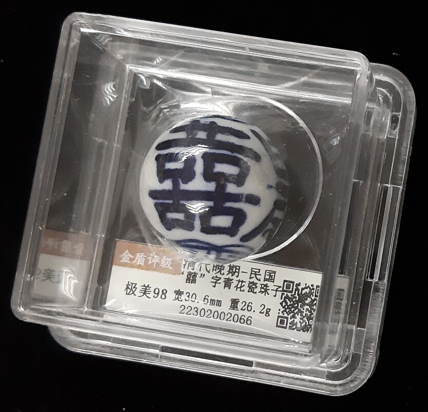 清代晚期 民國囍字青花瓷珠子 金盾 極美98 編號:22302002066[非公博評級,自行判斷,售後不退]