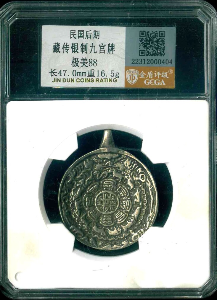 民國後期 藏傳銀制九宮牌 金盾 極美88 編號:22312000404[非公博評級,自行判斷,售後不退]
