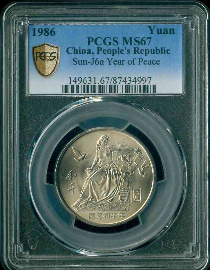 1986 中國國際和平年紀念幣 $1 PCGS MS67 編號:87434997