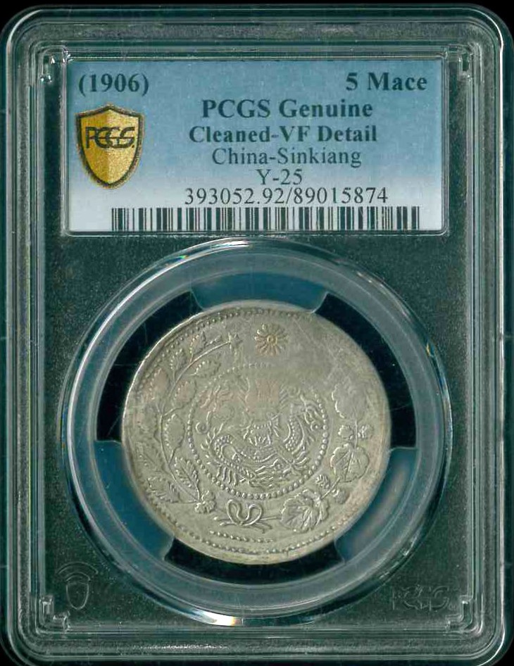 1906 新彊喀什大清銀幣湘平五錢 PCGS VF Detail 編號:89015874