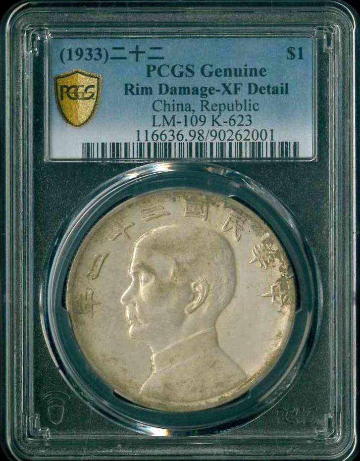 1933 中華民國22年孫中山 $1 PCGS XF Detail 編號:90262001