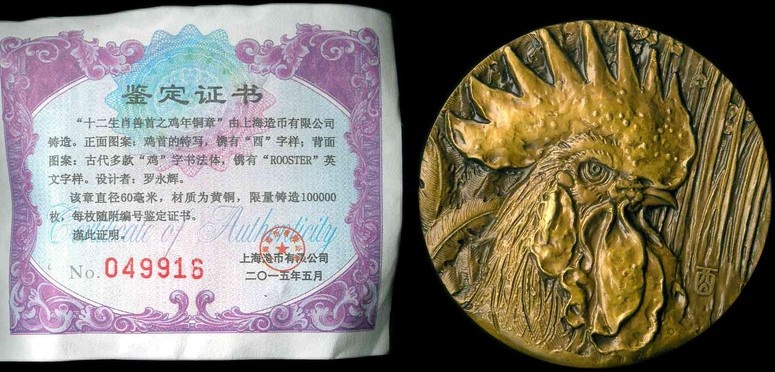 2015 上海造"雞"銅章 品相如圖 編號: NIL