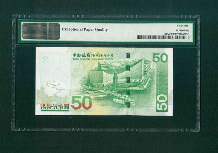 2007 香港中國銀行 $50 PMG 68 EPQ 編號: ZZ424061(補版系列,頂級雪白)