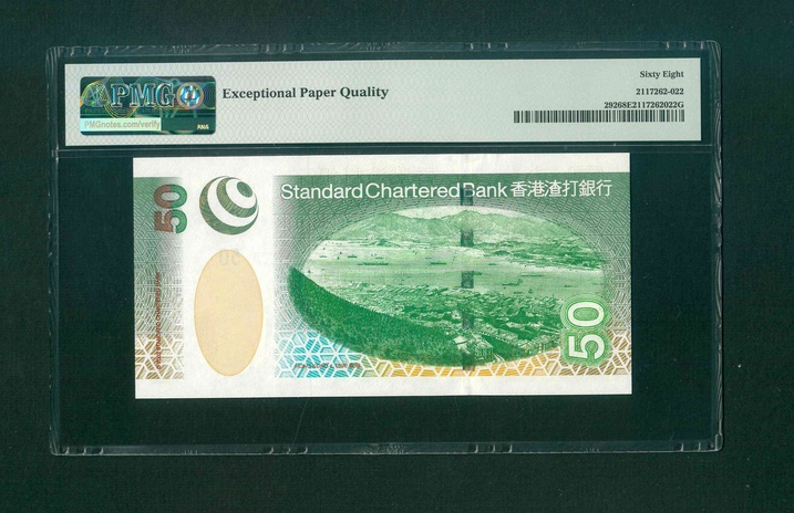 2003 香港渣打銀行 $50 PMG 68 EPQ 編號: AA630822(頭版系列,頂級雪白)