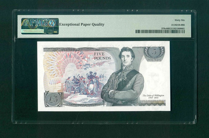 1980-1987ND 英國 £5 PMG 66 EPQ 編號: KU32 571361(頂級雪白)