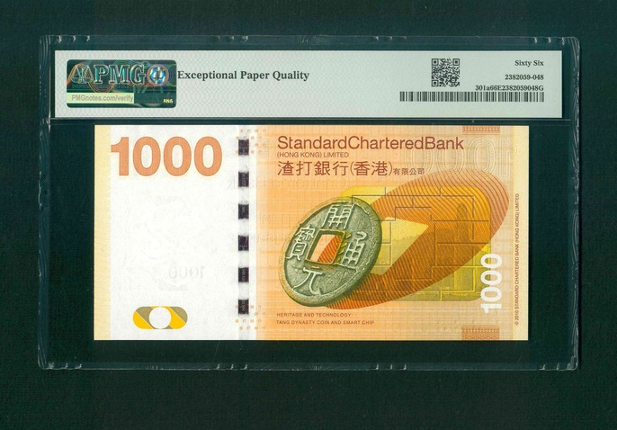 2010 香港渣打銀行 $1000 PMG 66 EPQ 編號: AA192222(頭版獅子號,頂級雪白)