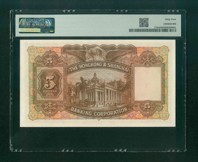 1946 香港上海滙豐銀行 $5 PMG 64 編號: U598314