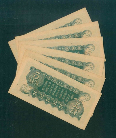 1945 日本軍票五錢 AU-UNC 編號: NIL(共6張)