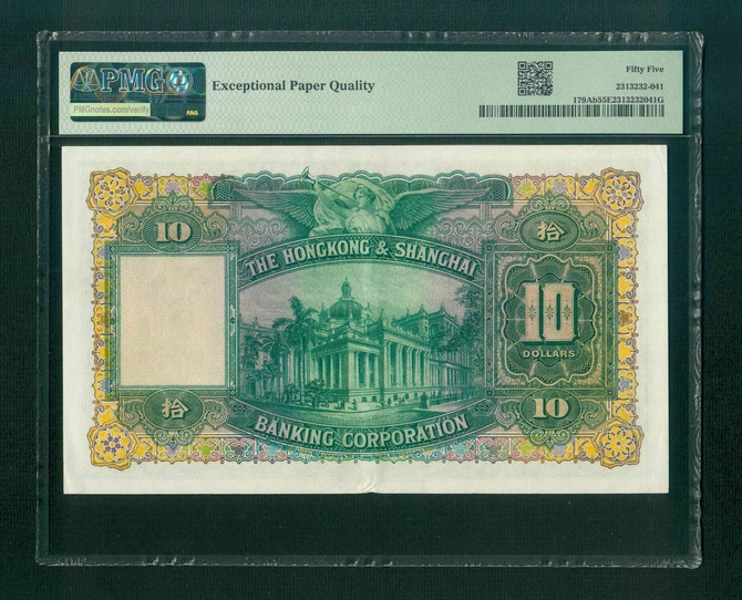 1956 香港上海滙豐銀行 $10 PMG 55 EPQ 編號: J/J 903837