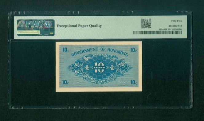 1941ND 香港政府 壹毫 PMG 55 EPQ 編號: 1217009