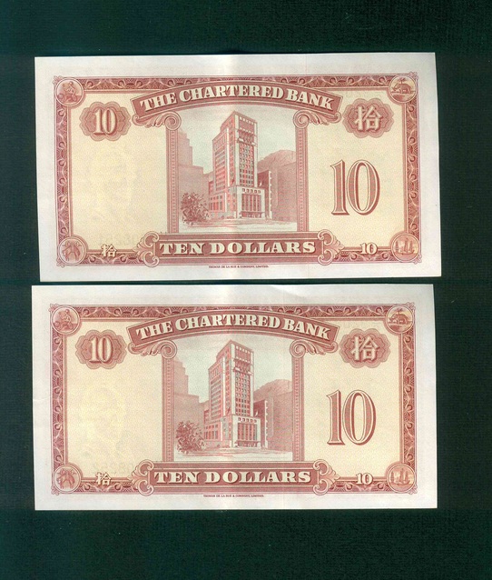 1962-70ND 香港渣打銀行 $10 AU 編號: U/G 9208251-52(共2張,連號)
