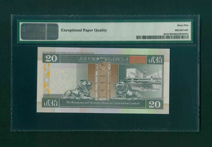 1996 香港上海滙豐銀行 $20 PMG 65 EPQ 編號: ZZ090040(補版系列,頂級雪白)