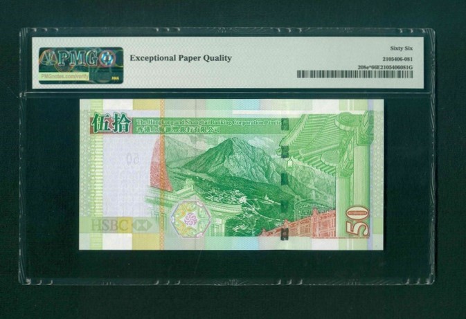2008 香港上海滙豐銀行 $50 PMG 66 EPQ 編號: ZZ758416(補版系列,頂級雪白)