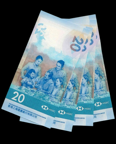 2020 香港上海滙豐銀行 $20 UNC 編號: HC003666...(共4張,豹子,含同號,頂級雪白)