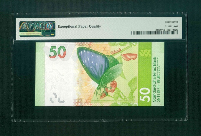 2018 香港渣打銀行 $50 PMG 67 EPQ 編號: AS902209(雷達號,頂級雪白)