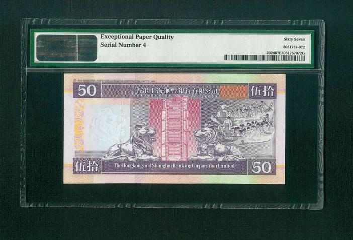 2001 香港上海滙豐銀行 $50 PMG 67 EPQ 編號: DV000004(4號仔)