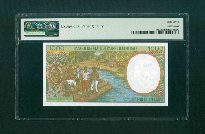 2000 中非/剛果 1000 Francs PMG 67 EPQ 編號: 0029073242(頂級雪白)