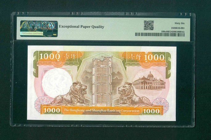 1991 香港上海滙豐銀行 $1000 PMG 66 EPQ 編號: BY103385(頂級雪白)