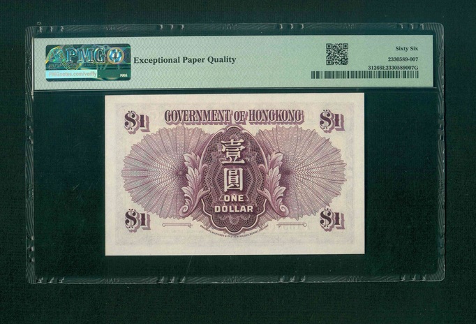 1936 香港政府 $1 PMG 66 EPQ 編號: P133707(頂級雪白)