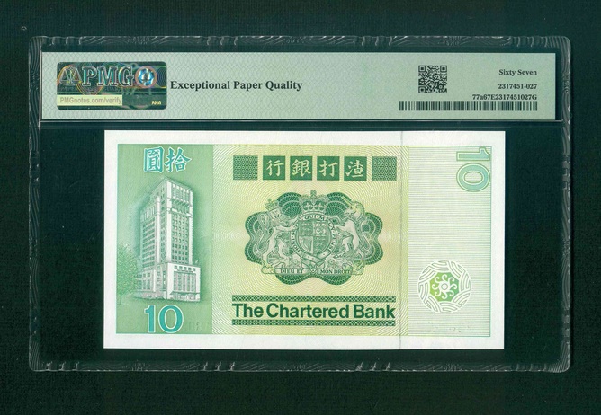 1980 香港渣打銀行 $10 PMG 67 EPQ 編號: A882227(頂級雪白)