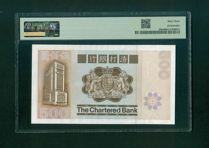 1982 香港渣打銀行 $500 PMG 63 編號: C869702