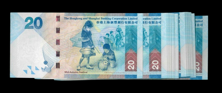 2016 香港上海滙豐銀行 $20 UNC 編號: ZZ231351-75(共25張.連號,頂級雪白)