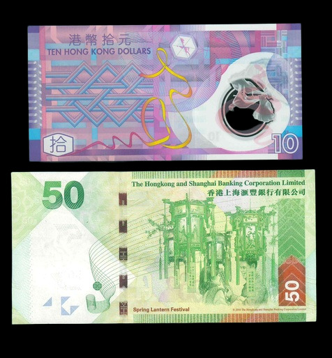 2018/2016 香港特區政府 $10/上海滙豐銀行 $50 UNC 編號: DE150015...(共2張,雷達同號,頂級雪白)