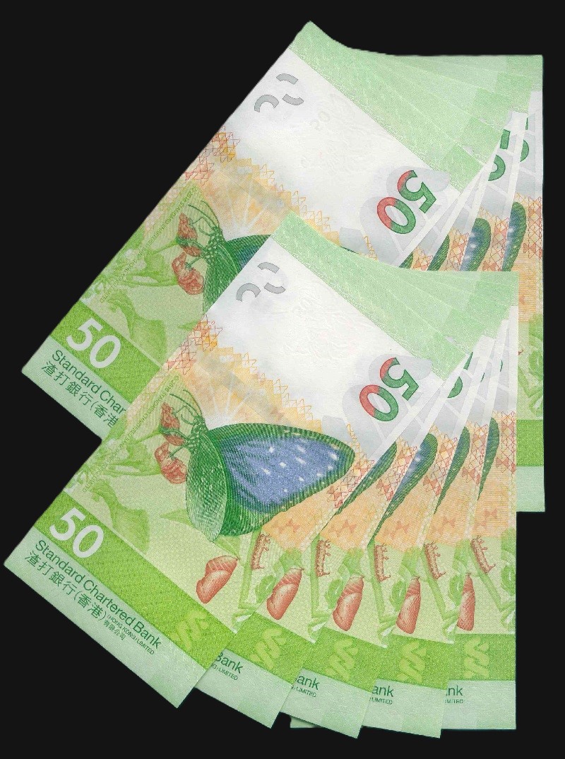 2023 香港渣打銀行 $50 UNC 編號: BK/BP 123411-15(共10張,5組各同號,頂級雪白)