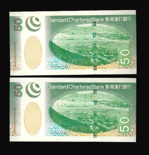 2003 香港渣打銀行$50 UNC 編號: AA705100…(頭版系列,共2張)