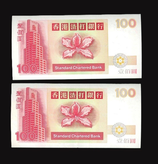 1999 香港渣打銀行$100 EF-AU 編號: EU889932…(共2張)