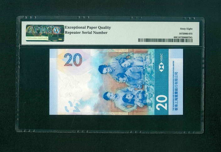 2018 香港上海匯豐銀行$20 PMG 68 EPQ 編號: BU358358(高分重覆號,頂級雪白)