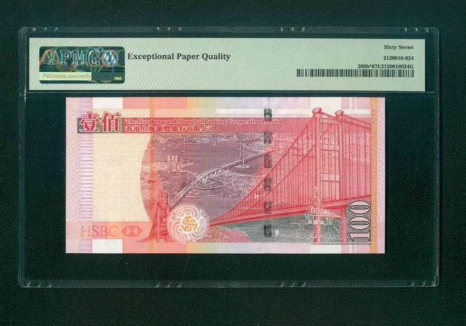 2005 香港上海匯豐銀行$100 PMG 67 EPQ 編號: ZZ502234(補版系列,頂級雪白)