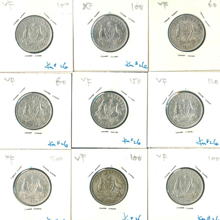 1916-35 澳洲 Shilling (共1.512oz Asw) VF/XF 編號: NIL(共9枚)