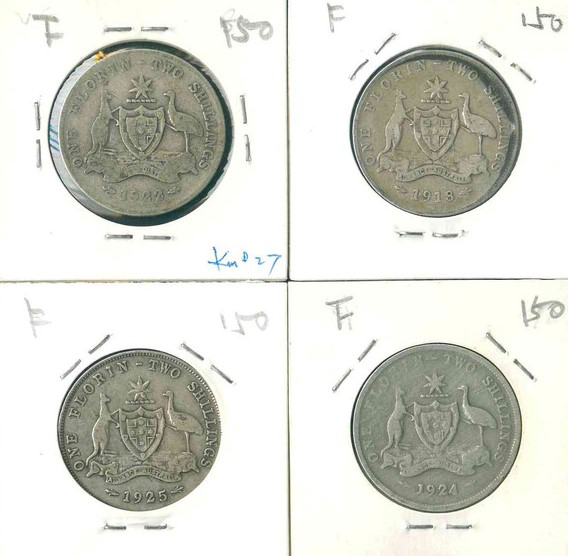 1918-25 澳洲 Florin (共1.345oz Asw) F 編號: NIL(共4枚,不同年份)