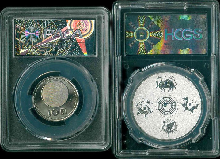 2001/ND 新台幣 $10 (中華民國90周年)/朱雀鍍銀紀念章 PACA MS68/HCGS PF70 編號: 8900018049…(共2枚)[非公博評級,自行判斷,售後不退]