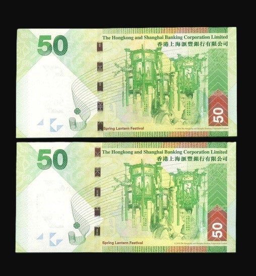 2016 香港上海滙豐銀行 $50 UNC 編號: GB/ FM 000043(共2張,同號)