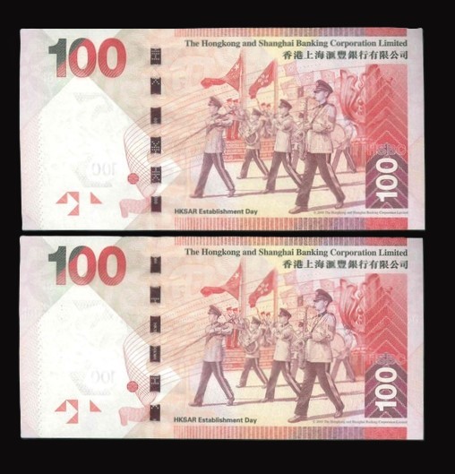 2017 香港上海滙豐銀行 $100 UNC 編號: KL/KG 130000(共2張,同號)