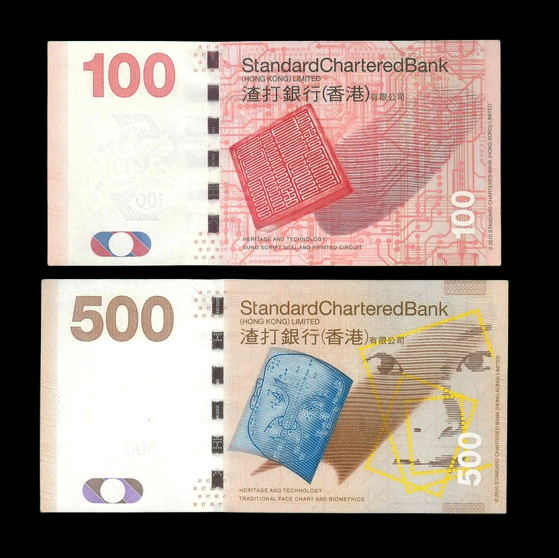 2010/2012 香港渣打銀行 $100 $500 UNC 編號: AE/AS 000037…(共2張,同號)