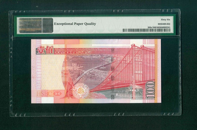 2006 香港上海滙豐銀行 $100 PMG 66 EPQ 編號: ZZ992078(補版系列,頂級雪白)