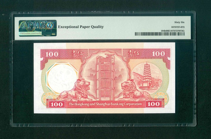 1988 香港上海滙豐銀行 $100 PMG 66 EPQ 編號: GK801863(頂級雪白)
